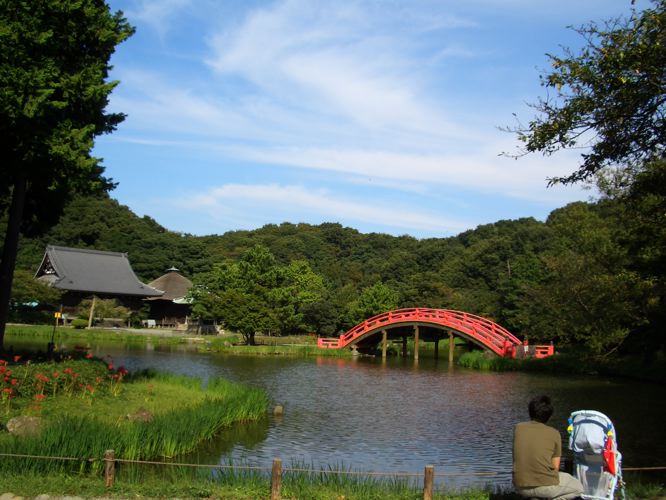 自転車を門の側に止めて境内に入ると池にかかる鮮やかな赤い橋が目に飛び込んできた。奥には寺社や鐘楼などが並んでいた。池の周りには赤い彼岸花が咲いていた。奥に進み左手に金沢文庫に通じるトンネルをぬけると金沢文庫の建物があった。今回は入らずに裏手に広がっている称名寺市民の森を散策してみることにする。