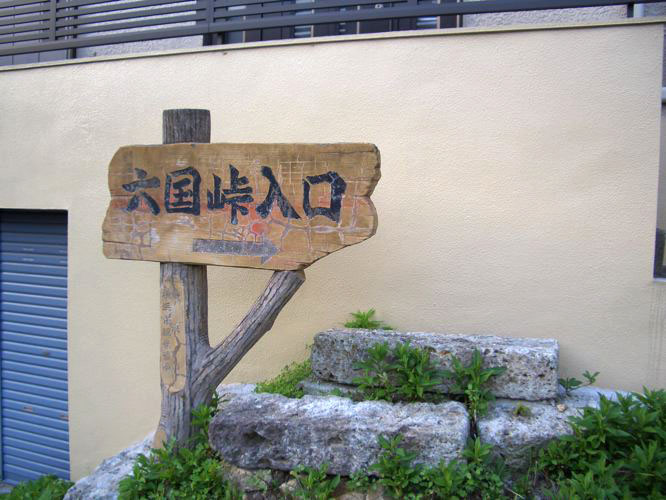 称名寺を後にして最後に能見台跡地に行ってみることにする。金沢文庫駅の線路沿いに進み、踏切を渡ってしばらく住宅街の中を進むと六国峠入口という立て看板があった。(このコースを辿っていくと鎌倉天園のハイキングコース等につながり鎌倉まで行くことができるそうである)