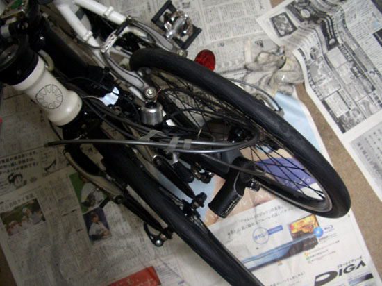 交換後の印象はタイヤが細くなったぶん空気入れのポンピング回数も少なくすむしリムへの装着にもそれほど力を使わずにすむようになった。スタンドを使用する場合にタイヤ周長が短くなったため直立気味になってしまいちょっと不安定になってしまったといったところか。