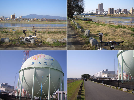 あゆみ橋を渡り相模川沿いにしばらく下っていく。旭健康広場横を通過し厚木ガスとかいうローカルなガスタンク横を走行していくとほどなく前方に東名高速の高架が見えてきたので右折して通りにでる。