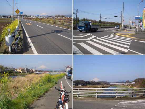 電話局のあたりで右折して岡田という交差点を曲がり小田原厚木道路の側道に入る。富士山や丹沢を望みながら気持ちよく走行していく。
