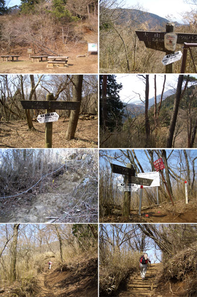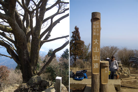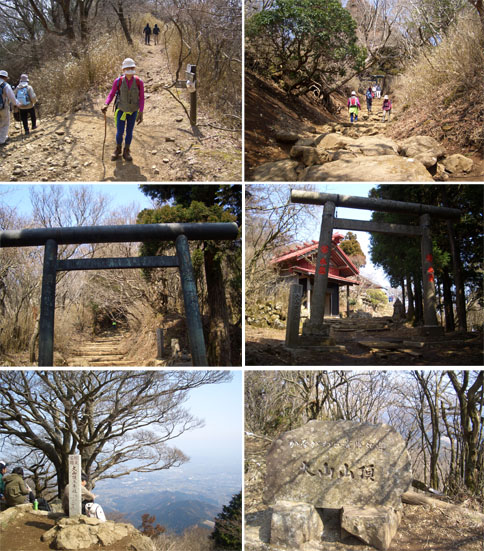 ほどなく伊勢原側からの登山道との合流地点にでた。ここでおばさんと分かれて山頂に向かう急な階段をのぼっていくと鳥居が現れようやく山頂に到達したようだ。時刻は1時すぎとなっていた。