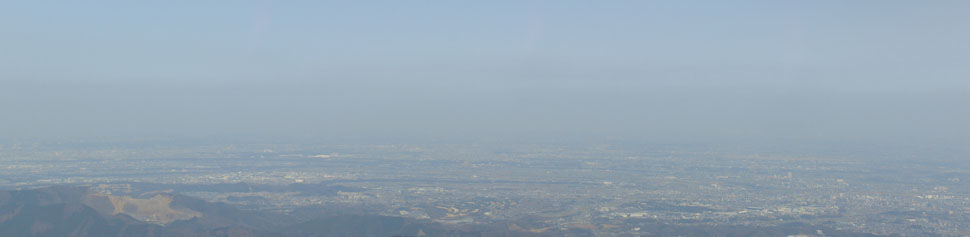 ひととおりぐるっとまわってから一段低くなった広場で下界を眺めながら昼食とすることにした。眺望のほうはあいにく靄ってしまっていたがスケールの大きな景色だ。ちなみに大山の標高は1,251.7mということだ。