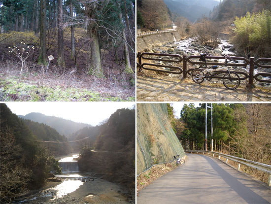 裏ヤビツを下っていくにはまだ寒いだろうということで再び防寒着を着込んで宮ヶ瀬湖目指して下る。途中で護摩屋敷の湧水で顔を洗い水を補給して札掛橋あたりまで下る。ここから先は斜度も緩んで道も細くなり路面状態に注意しながらゆっくり目に下っていく。
