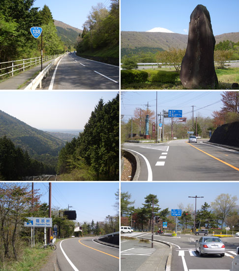 石碑のある広場があったのでちょっと休憩。富士山の頭だけがちょこんと見えていた。さらにひとのぼりすると右手側の眺望が開けてきて山梨県山中湖村の標識下を通過、ほどなく籠坂峠に到着した。時刻は9時半ということでのんびり写真を撮りながら上ってきたので1時間半ほどかかってしまったようだ。ガイド本では峠から左折して別荘地を抜けていくとなっていたのだがR138号線を下りはじめてしまったのでまた走行する機会があればということでそのまま下ってあっという間に山中湖前の旭日丘交差点に到着。湖畔のトイレで顔を洗ってベンチで持参してきたバナナを食べながらちょっと休憩。