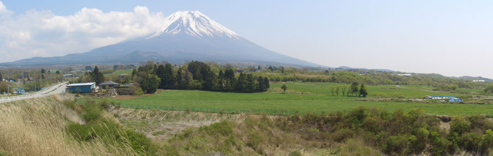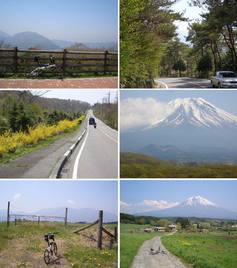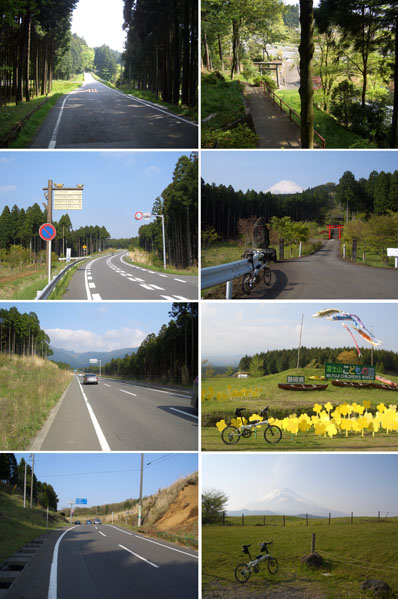 さらにひとのぼりして富士山こどもの国前に到着。休憩していると先ほどの小径自転車の人がやってきた。またしばらく話をしてから出発、十里木高原あたりから下りに転じて忠ちゃん牧場前を通過して急な下り坂を下っていく。10%表示の標識がたっていたのでこのあたりが今回のルートのもっとも急傾斜部分だったのだろう(下りでよかった)。
