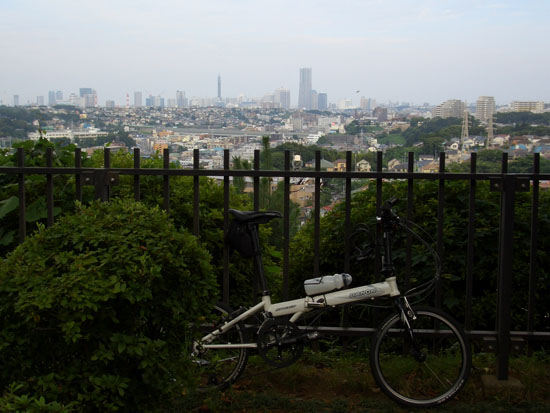 蔵王神社前を左折するとちょっと長めの上り坂(700mくらいか)となった。上りきって振り返るとみなとみらい方面などの横浜中心部が見晴らせた。