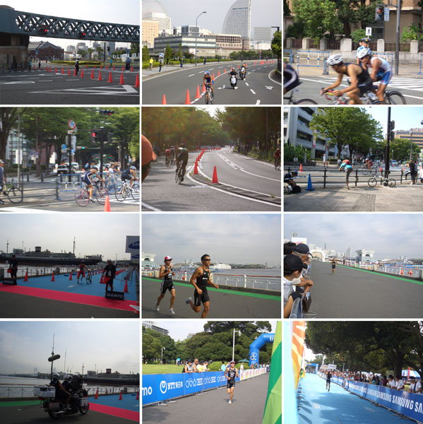 8時すぎに出発、みなとみらい地区を抜けて国際橋を渡ると交通規制されていてコース上には進入できなくなっていたので歩道をちんたらといくことにする。歩道には係員が数十メートル置きにいる。サークルウォーク下の横断歩道を渡っているときにバキっと何かを踏みつけてしまった。歩道脇で確認してみるとなにやらねばねばとしたものと一緒にガラス片が前輪に付着していたので手で払いのける。さいわいパンクはしていないようなので安心した。赤レンガ倉庫前から新港橋を渡ると自転車に乗った選手がサーッと通過していった。しばらく立ち止まって観てみることにする。さらに何台かが通過していく。大桟橋入口あたりにくると観戦している人が増えてきた。山下公園内は大賑わいだ。公園内でしばらく観戦。水泳は終了していて現在は自転車からランニングにかわっていた。目の前を選手がつぎつぎと通過していく。9時すぎには先頭の選手がゴールした。ユース男子(高校生以下)のレースだったようでこの後がエリート男子ということらしい。人も増えてきたので今回は雰囲気も味わえたということで帰ることにした。