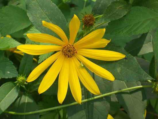 バス停脇から市民の森に入ると尾根みち、谷みちとあったので尾根みちをいく。みほだいらという広場のベンチで少し休憩。蚊がまとわりつくのでのんびりできない。蜩の鳴き声がみちている。