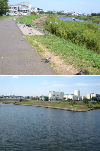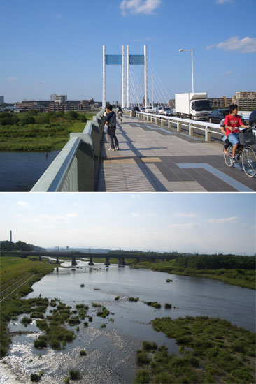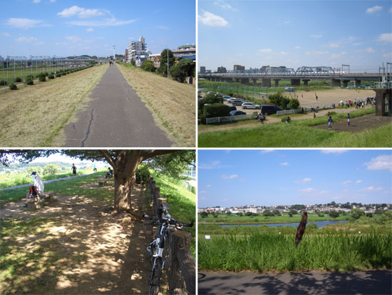 調子よくペダルを漕いで多摩水道橋手前の二ヶ領ふれあい館までノンストップで走行しちょっと休憩、顔を洗ったり水分補給する。多摩水道橋下を抜けてさらに上流へむけて左岸を走行していくと布田橋で舗装路が途切れたので信号を渡り多摩沿線道路にでる。