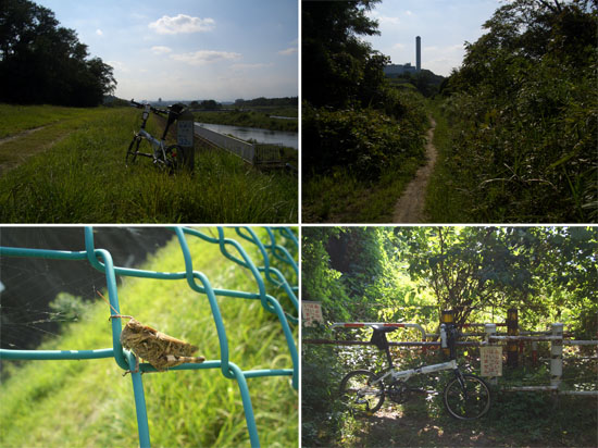 是政橋を越えると未舗装路がまだ先へと延びていたので清掃工場の煙突を眺めながら進むとMTBに乗っていた人がこの先行き止まりですよと教えてくれた。行き止まりなのは知っていたのだがとりあえずいけるところまでいく。草むらには蝶やらバッタやらが飛び交っていた。