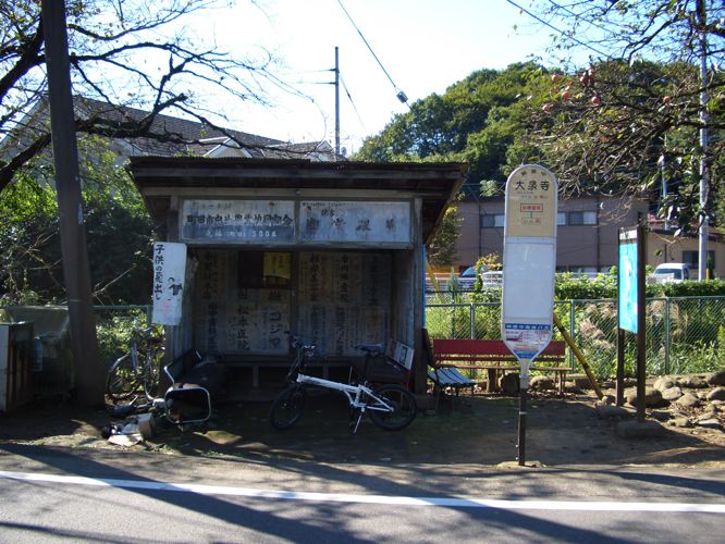 袋橋の先の参道橋前方で行き止まりとなり走行できなくなるので、横を走る芝溝街道へでた。緩やかな上り基調の道をのんびりと走行し図師大橋交差点で右折した。更に進み日大三高入口を通過する。この辺りになってくると何とものどかな田舎の風景となってきた。更にこいで大仙寺のバス停を通過ししばらく走行するとT字路にぶつかった。ここは小山田のバス停でロータリーになっていた。