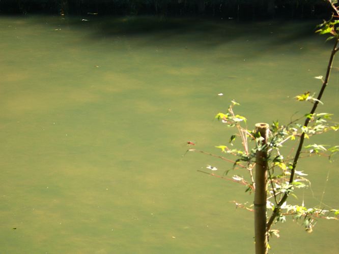 鶴見川源流を後にして大仙寺のバス停付近まで引き返し、小山田緑地を散策することにする。大仙寺脇の細い上り坂をのぼっていくと二股に分岐していたがそのまま直進し進んでいくと砂利道となったので押していくことにした。しばらく歩くと目の前にゴルフ場が出現した。ゴルフ場を横切りそのまま進むとトンボ池方面という表示があったので進むことにしたが途中で階段が現れたので担いでいくことにした。トンボ池につくと水草が生い茂り水面をみることはできなかった。池の上には木道が続いていたが先の方が階段上になっていたので引き返すことにした。きた時と違う舗装された道で引き返した。