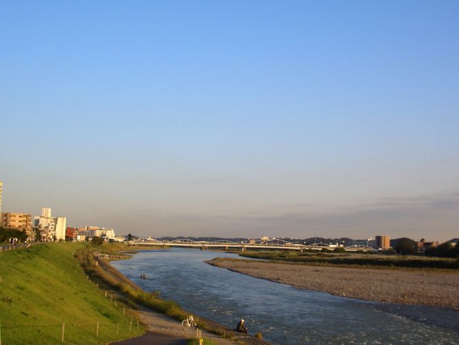 ここから今度は右折してしばらく一般道を走行し、大栗川沿いのプロムナードを走行することにする。路面は石畳風で走り難いのでのんびりと走行していくことにした。下り基調で軽快にくるくるこぎつづけると前方に聖蹟桜ヶ丘の街をみながら乞田川と合流地点をすぎて多摩川左岸に到達した。交通公園という信号やら踏切などがある公園で休憩したあとに関戸橋を渡り多摩川左岸へ移動する。(右岸沿いに道がない)上流方向にある府中四谷橋の袂まで走行しUターンして下流に向けて帰路につくことにした。