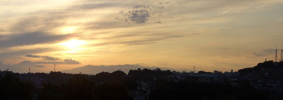 今日はちょっと雲がかかっていたけどラッキーにも富士山を見ることができた。もうちょっとすれば大山あたりに日が沈むのを見られそうということで一旦展望台をおりて付近を散策後に再び展望台に上がる。残念ながらちょっと雲が多くなってきてしまった。大山に日が隠れたのを見届けてから帰路につくことにした。