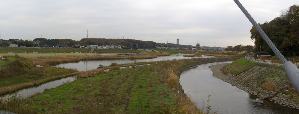 中原街道は茅ヶ崎駅前あたりまで続いているようだけど今回はサイクリングコース(藤沢大和自転車道)へといってもこのあたりは自動車と並走している区間だけど…。団地区間を抜けて長後街道と交わる高鎌橋付近から田園風景の中をのんびり気持ちよく走れる感じになってきた。ほどなく境川遊水池公園に到着(1120)。鷺舞橋を渡って公園の周囲を回ってみる。