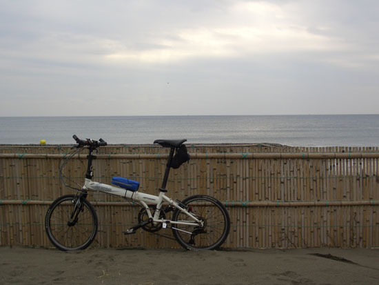 ほどなく終点の藤沢市民病院裏に到着。天気も持ちそうだし一般道で辻堂海浜公園まで走行して海沿いにでることにした。公園から海沿いにでると鉛色の海が広がっていた。