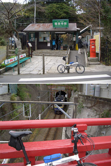 ちょっと引き返して極楽寺駅への裏道へ入ってみる。レトロな雰囲気の極楽寺駅前付近で小休憩。