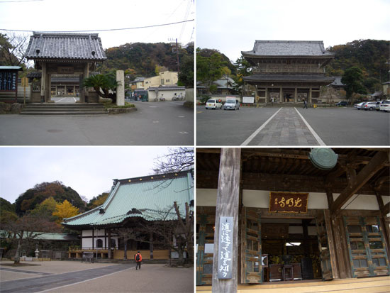 再びR134号線にでて滑川交差点を左折する。最初の信号を右折して九品寺(くほんじ)前で右折、光明寺という大きな門のある寺に寄ってみる(1344)。天気も悪いし駅から遠いこともあってか人影もまばらな感じ。大きな山門をくぐって本堂の前にいくと柱には“道に迷って道を知る”という札がかかっていた。まあそりゃそうだなと思いながらざっと一回りして裏山?に向かう。