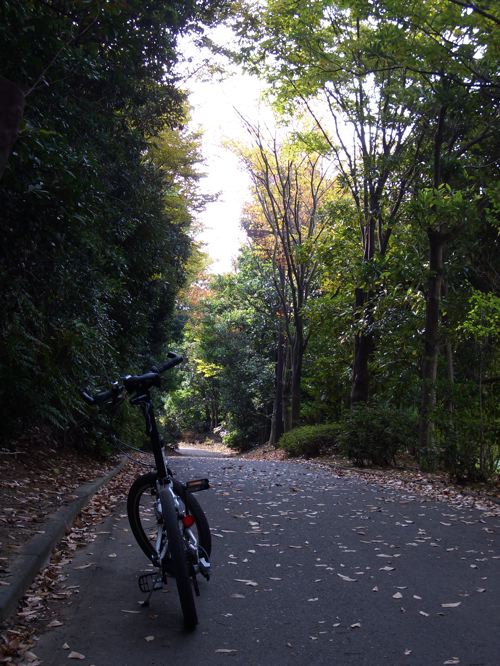 しばらく休憩後に塚山公園に向かうことにする。R16号線を横断して安針塚駅前を過ぎるとのぼり坂がはじまりしまいにはこぎ続けることが不可能な傾斜の坂となったので降車してのぼることにした。息をきらせながらのぼりきり自転車を駐車してさらに階段をのぼり安針塚をみてみることにした。その後見晴台までのぼって、付近で昼食をとることにした。