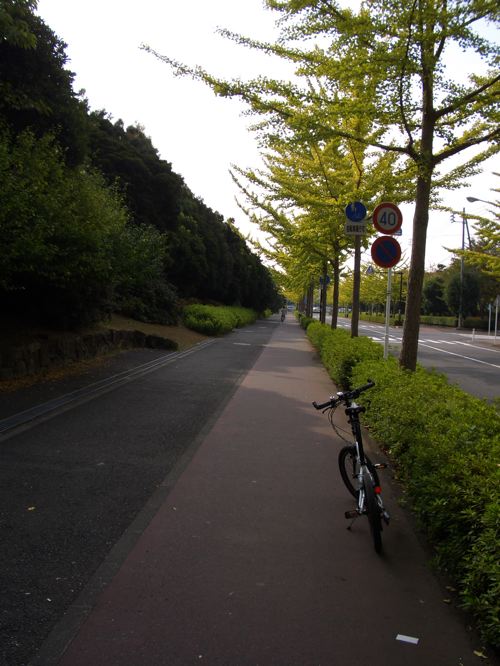 しばらく走行して外側に走っている歩道に出た。そのまま銀杏並木の歩道を走行すると金沢柴町を通過しほどなく海の公園に到着。