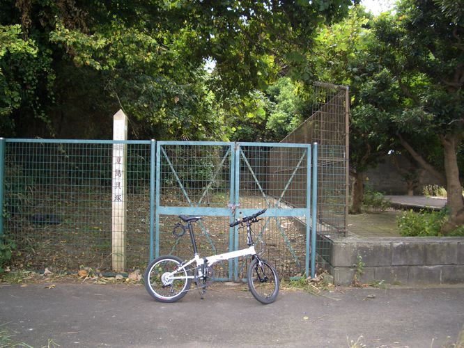 夏島貝塚は島の奥の方にあった。立ち入り禁止の柵がしてあって中には入れなかった。横に明治憲法記念碑があった。仕方ないので貝山緑地まで引き返し急な坂を押して頂上まで登ることにした。頂上に展望台があり長浦湾や東京湾が見渡せた。