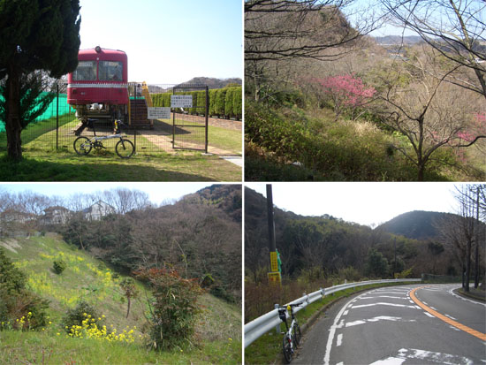 踏切渡り直進すると丁字路となる。さてどっちに曲がるのか…地図で確認。桜山中央公園経由だと最短距離ということで左折してすぐ先の信号を渡り桜並木の道をのぼっていく。プチ峠道という感じでくねくねとカーブを曲がり桜山中央公園前に到着。息を整える。ちょっとのぼって住宅地の中を下っていくとまたもや丁字路。ここでまた地図を確認。左折してすぐ右折すると前方に山が見えた。左手の斜面には菜の花が咲いていて綺麗。下ると南郷交差点にでた。