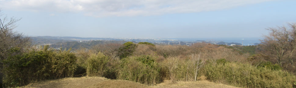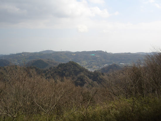 展望台には“上二子山 207.8m”という木製の札が架かっていた。展望のほうはというと今日はちょっと気温が高めで昼すぎということでもやもやとしていて今ひとつな感じ。北にはみなとみらいや金沢の湾、南側には湘南国際村?方面が望めた。さすがにこのあたりまでくるとランドマークタワーもずいぶんと小さくなってしまう。