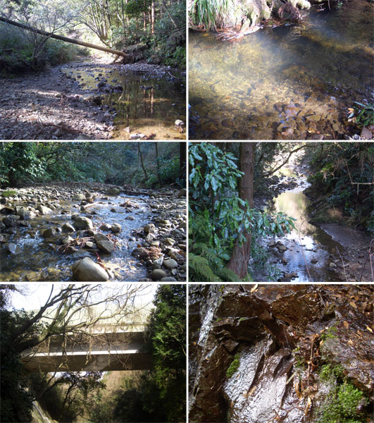 川原で親子連れが川遊び?をしている。ここから先は樹木で日が遮られているせいか午後になってきたせいか少し薄暗く感じてきた。意外に距離があるなあなどと思いながら歩いていくとベンチのある広場に到着した(1517)。ここは川が合流している地点で二子山という矢印の案内板がでていたが今回はここで引き返すことにした。足もとに気をつけながら少しペースを早めて歩く。三浦半島縦断道路高架下から階段が続いていたので上ってみようかなどと考えているうちに通りすぎてしまった。次回きたときはのぼってみることにしよう。林道入口のゲートにようやく到着(1552)。今日は結構歩いて疲れたので探索はここまでにして帰路につくことにした。