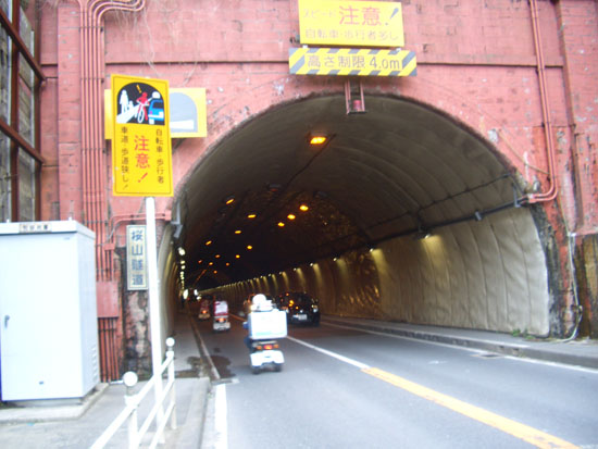 川久保交差点を渡り一本裏の道で長柄交差点にでると消防車がサイレンを鳴らして通過していった。右折して桜山トンネル前に到着(1609)。このトンネルは結構長く歩道も狭いので歩行者・自転車に注意という標識がある。交通量も多いので注意が必要だ。葉山側からは若干下り、後続の車に対向車がきているため抜くに抜けないせいかクラクションを鳴らされる…。
