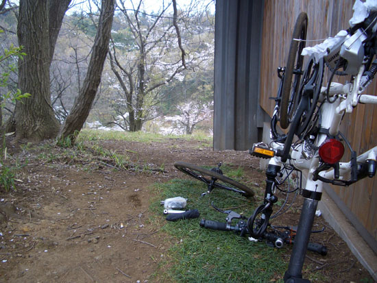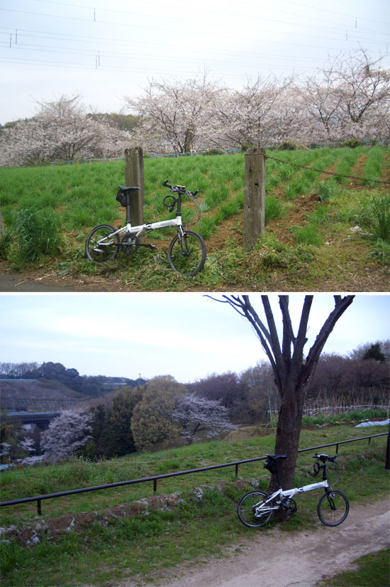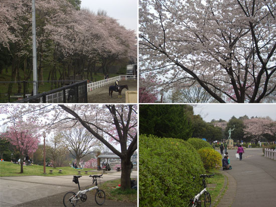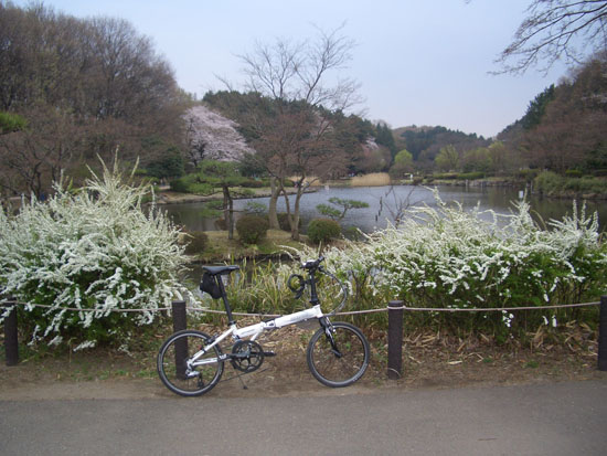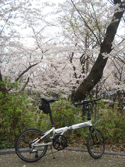 今回は約2週間ぶりに折り畳み自転車のdahon号に乗ってお花見ポタリングにでかける。皇居あたりまでいって上野公園〜浅草あたりから建造中の新東京タワー(スカイツリー)でも見物してこうようかななどと思ったけど天気も不安定そうだし午後からだと人混みも凄そうなのでまた別の機会に(来年以降でしょうか…)ということでわりと近場の公園を回ってくることにした。