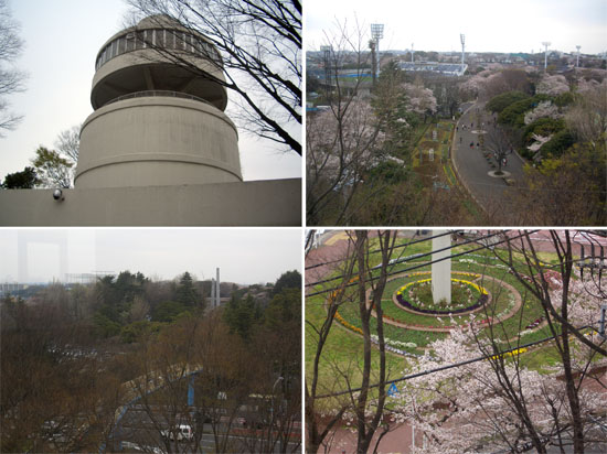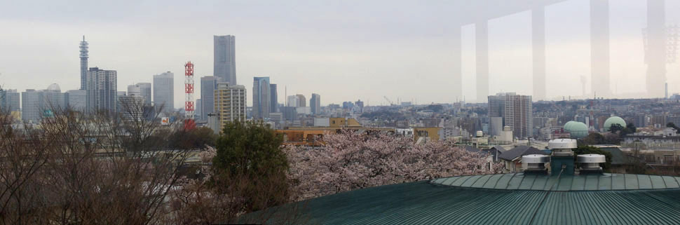 三ツ沢公園をあとにして市民病院脇を下り脇道に入って三ツ沢上町交差点までくだる。通りを横断して大池道路経由で次の目的地、水道記念館に向かうことにした。緩めのアップダウンをこなして和田町交差点までは豪快にくだる。R16号線にでて次の信号で左折し地下通路で帷子川と相鉄線を越える。正福院入口を右折して蔵王神社前の信号で停止、ここからややきつい長めの上り。今日は途中の信号も青で通過しノンストップで記念館前までのぼる。疲れた…。最後のひとのぼりがキツイ。水道記念館には以前きたときよりも人出がある。係員に自転車はここに駐めてといわれたので入口脇の駐輪場所に駐輪して奥にいってみる。桜の本数は少ないけどランドマークタワーの展望との組み合わせが良い感じだ。