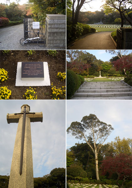 再びR1号線にでて緩やかな坂道をのぼっていく。こども自然公園入口で右折し園内に入ってみるがこの公園をのんびりまわっていると英連邦戦没者墓地をまわれなくなりそう(5時で閉園)なので今回は上からちょろっと眺めるだけにした。さらにひとのぼりしてこども植物園前を通過し若干下ると英連邦戦没者墓地前に着いた。石畳の坂をガタガタと下り墓地入口前に自転車を駐輪して中に入ってみると日本離れしている空間となっていた。時間がないのでささっと散策して入口まで戻るとちょうど閉園時間の5時2分前となっていた。