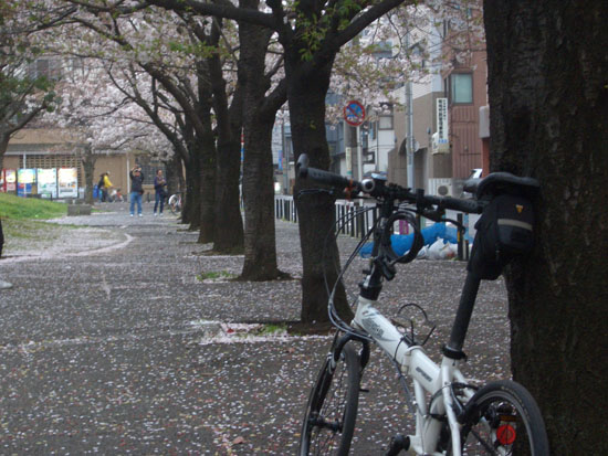 図書館をでて日ノ出町あたりから大岡川の左岸沿いに上流にむけてポタリングしていく。桜はだいぶ散り始めていたがまだなんとか見られる感じだ。それほど混雑はしておらず自転車に乗車して写真撮りながらのんびり走行することができた。