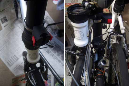 先日のパンクしたチューブの修理とボトルケージ装着アダプターを取り付けてみる。