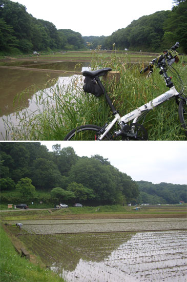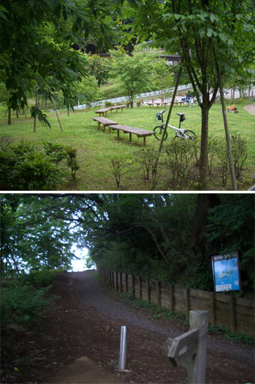 10分ほど休憩。ロードバイクの人がするすると入ってきたので挨拶する。ちらっと源流の泉を見て去っていった。さてもときた道を引き返すのもつまらないし今年は多摩川に一度もいっていないということで地図を確認すると山ノ端バス停あたりから唐木田駅方面に抜ける道があったので向かうことにした。道幅も広くわりと新しい感じの道だ。農作業風景を眺めながらゆるゆるとのぼっていくとややきつめの坂道となるがそれほど長くはなく頂上にでた。右手に公園があったので小休憩。