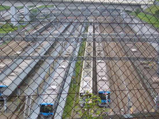よこやまの道という案内板がある。どうやら尾根幹線道路沿いに整備されているようだ。結構アップダウンがありそう。公園の前には小田急線の車輌基地がすぐ下に広がっていた。