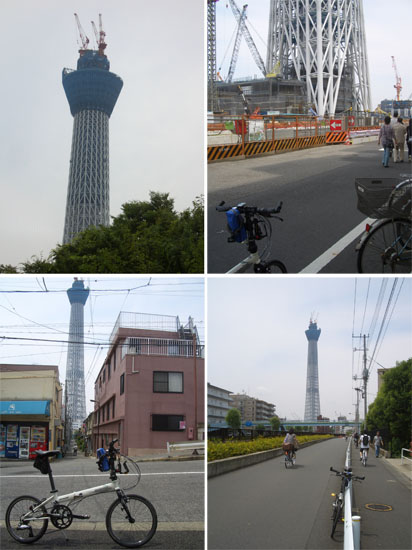 気温高めで風もやや強くやや悪条件だったけどまずまず楽しめたかな。さすがに140km近く走行すると疲労感もずいぶんあるけど充実感も大きいかな。スカイツリーは完成すると634mということなのでまだ残り236mも高くなるのか…。