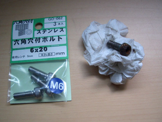 バーエンド・バー(“TIOGA パワースタッド6mini”)の取り付けボルトが錆びてしまっていたので交換した。