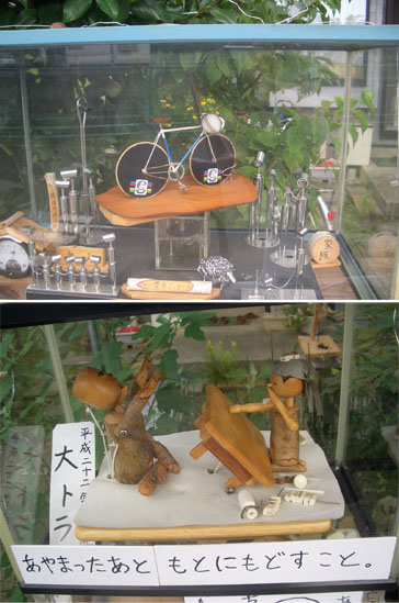 切り通しを抜けて四ツ木橋から再び鶴見川沿いを走行していく。鶴川駅近くの民家前にからくり人形?が展示してあったのでちょっとのぞいみる。