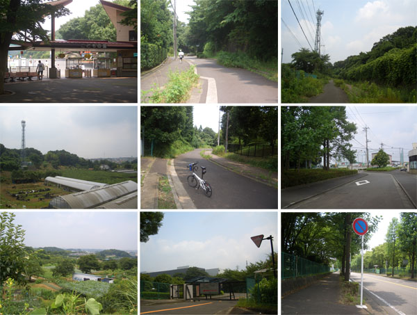 こどもの国入口前に到着(1100)。緑山方面に向かうことにする。自動二輪車通行禁止の標識がでている方面に右折してみる。霊園入口まで急な坂道。バリケードを抜けて尾根道にでる。右手は住宅地で左手には農地やら巨大なアンテナ、ゴルフ練習場などが見える。のんびりと走行していくと見覚えのある緑山バス停あたりにでた。左折してTBS緑山スタジオ前の坂道を下っていく。