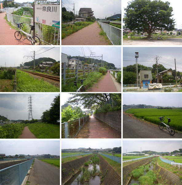 日影橋で恩田川と合流。R246の高架下付近から未舗装路となったので今回は川土手は避けて岩川沿いを上流に向けて最初の橋のところで左折してみる。東名高速高架沿いにしばらく走行すると環状4号線につきあたった。横断できないのでいったん左折して下台交差点までいきUターンして恩田川沿いにでてみた(この辺がちょっとやっかいだな)。しばらく未舗装の土手を走行し八十橋から川沿いを離れて農道を走行。お昼近くとなってかなり暑くなってきた。
