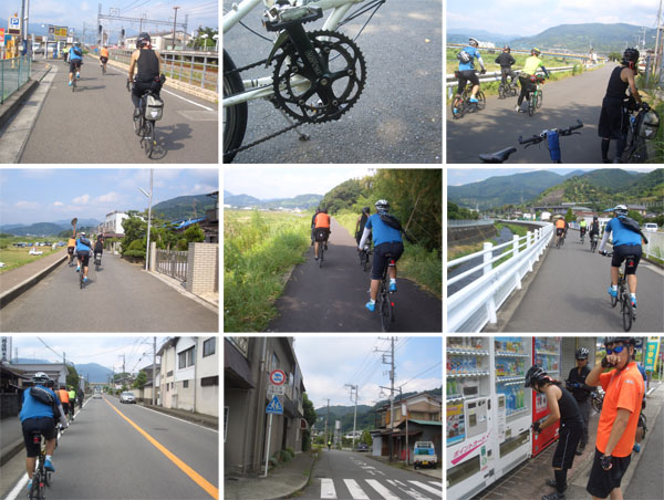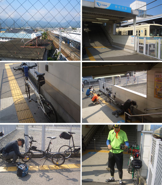 小田急線に乗りこみ8時20分すぎに新松田駅に到着。ホームに降りて自転車を担いで歩き出そうと思ったら肩からショルダーベルトが外れてガシャンと落としてしまう…。集合場所の南口に出るとまだ誰も来ていないようだった(0830)。自転車を展開してからあたりをうろうろして戻ってみると一人二人と集まってきた。今回は忍太さん、ナガさん、かめねこさん、ロケットさん、Fさんと私で計6名参加。