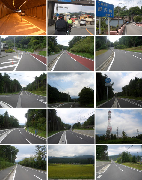 生土(いくど)あたりで左折して県道にでる。コンビニで小休憩。菓子パンを食べる。小山交番前を通過して野沢川沿いの道へ右折。藤曲地区を抜けるといよいよ山地に突入。道幅も広く舗装も良くてなかなか快適な道だ。新富士変電所脇を抜けるとほどなく明神峠入口に到着した(1147)。ここまでフロントインナーのみで走行してきたけど速度の乗りが悪くとろい感じ。写真撮りながらちんたら走行していたら遅れてしまったよ。申し訳ない…。