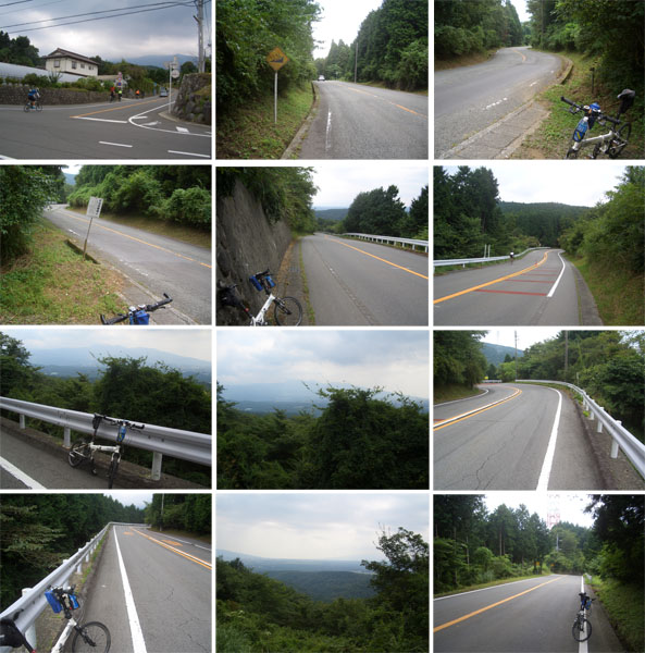 インナーギヤのみで道志みちを下るのは迷惑をかけてしまうし鉄道も通っているということで幹事の忍太さんと私はきた道を戻ることにして他は予定通り道志みちへということになった。峠まで少し上りかえす。雲が山肌にまとわりついていて幽玄な感じに見える。明神峠からの下りは勾配がありすぎで怖くてスピードが出せない…。途中で前輪がパンクもするし…(走行中でなくて良かったが)。松田駅手前までのんびりと走行して忍太さんとお別れする。
