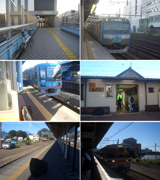 今回は今年の目標であった富士山スカイライン新五合目までいってきた。5時起床し朝食(カレーライス、ヨーグルト、バナナなど)をたっぷりめに食べて6時ちょっと前に出発。天気は良さそう。睡眠時間が2時間ほどだったのでちょっと不安…。西横浜駅に6時過ぎに到着し自転車を折り畳んで相鉄線に乗りこむ(0615)。湘南台行きだったので二俣川で乗換える。海老名駅からは小田急線、今日は丹沢の山並みがくっきりと見えている。新松田駅で御殿場線に乗り換える。ホームから富士山が見えている。20分ほど待って去年と同じ8時12分発沼津行きに乗りこむ(もう一本早いのに乗りたかったが…)。御殿場駅に8時50分ころに到着。