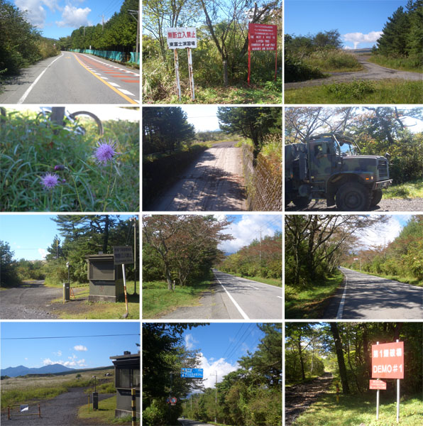 前方に見えていた富士山にみるみるうちに雲が広がってきてついに隠れてしまった。これ以後今回は富士山の姿をみることはなかった…(0950)。緩やかな長い直線道路を走行して自衛隊や米軍施設を抜けると民家もなくなりいよいよ山岳道路っぽくなってきた。道路脇に東富士演習場への入口があちこちにある。写真を撮りつつのんびりのぼっていく。