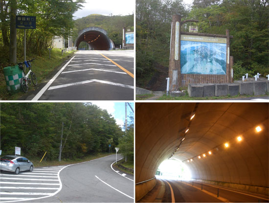太郎坊洞門を抜けてつづら折れ区間を抜けるとまたもや前輪がパンク。数十mほど滑走して停止(急カーブ区間でなくて良かった)。替えチューブがないので先ほどパンクしたのをパッチ修理することにする(1745)。リム側に3mmほどの裂け目がすぐにみつかる。どんどん日が暮れてきてあたりはすっかり暗くなってしまった。時々がさがさという音が森の奥から聞こえてきてちょっと不安な気持ちに…。2kmほど下ると滝ヶ原駐屯地にでた。ここまでくれば安心だ。