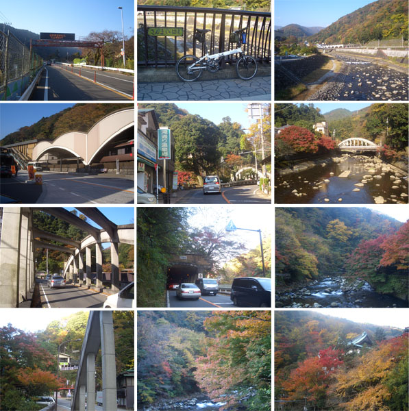 東風祭でR1に合流する。三枚橋あたりまでくるとさらに風がひどくなっていて先行きちょっと不安になる…。箱根湯本駅前を抜けた先の橋でちょっと休憩(0900)。このあたりもそこそこ紅葉している。このあたりからいよいよ山岳区間だ。ほどなく箱嶺洞門?に到着(0904)。歩道側へ渡りたかったが交通量多かったのであきらめてそのまま車道を直進。このあたりの渓谷も結構紅葉していたけど日陰になっていて見栄えはいまひとつか。