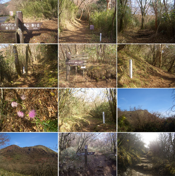 入口には駒ヶ岳まで90分という表示がある。自転車を柱にくくりつけてから5分ほど休憩してのぼりはじめる。杉林の中を通り抜けて階段をのぼっていくとハイカーの集団が昼食休憩をしていたので挨拶して通り抜ける。急傾斜となりしんどくなってくる。よろよろとマイペースでのぼっていく。道は少し湿っていて落ち葉が敷き詰められている。もうちょっと早い時期だと紅葉が楽しめたのかも。所々に白い柱がたっていて“Bou 4”などと書いてある(ちなみに入口あたりには17というものがあった)。ようやく分岐地点に到着(1338)。“神山 45分・大涌谷 95分・駒ヶ岳 25分”となっている。